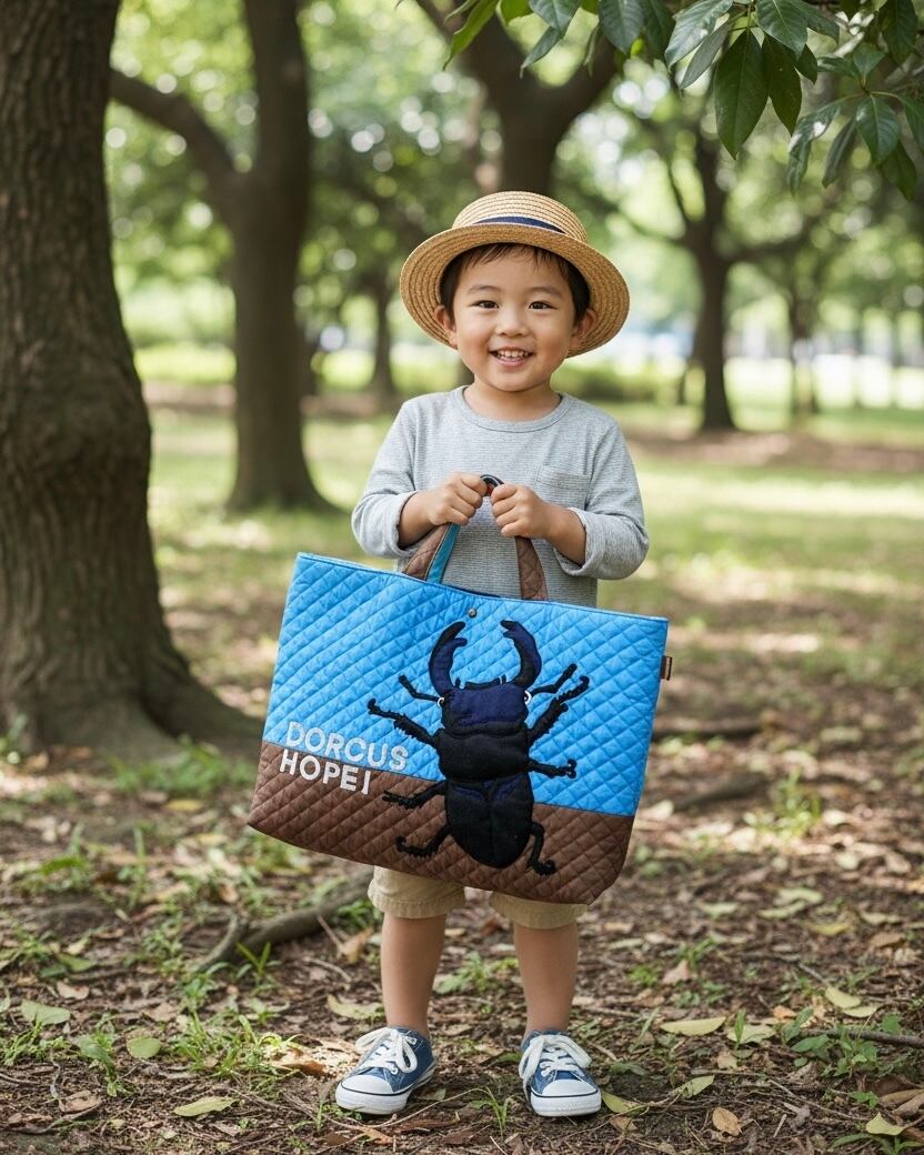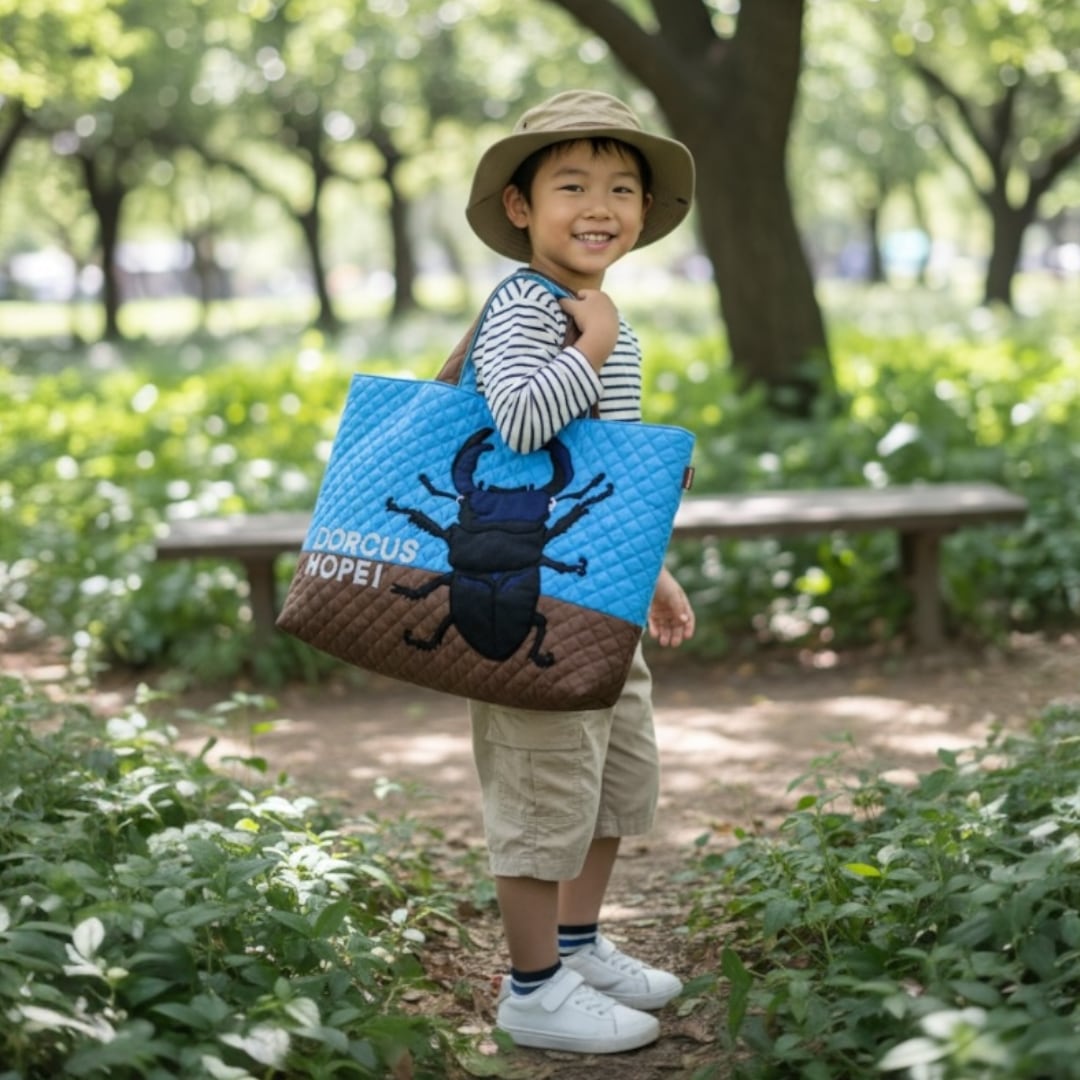 入園入学【即発送】レッスンバッグ|昆虫オオクワガタ|キルティング|3日以内に発送|Stag Beetle Book Bag