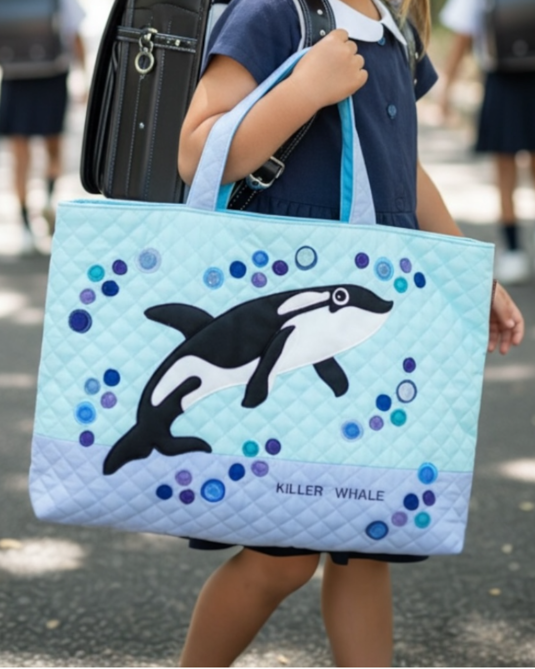 レッスンバッグ・シャチ(ベビーブルー×スカイブルー)キルティング/男の子/女の子