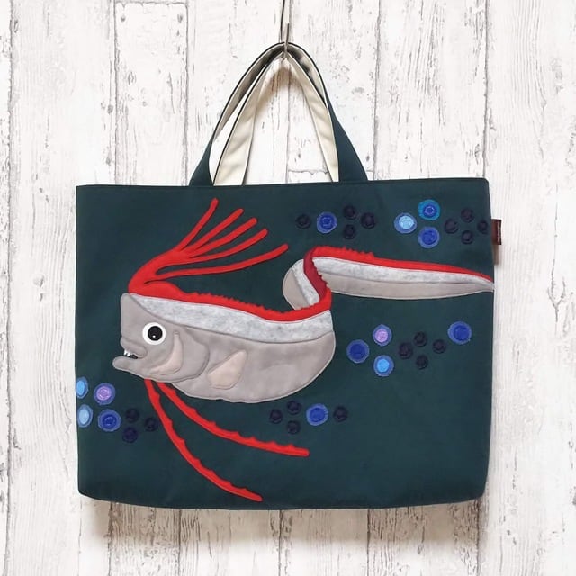 リュウグウノツカイのアップリケつきレッスンバッグです。