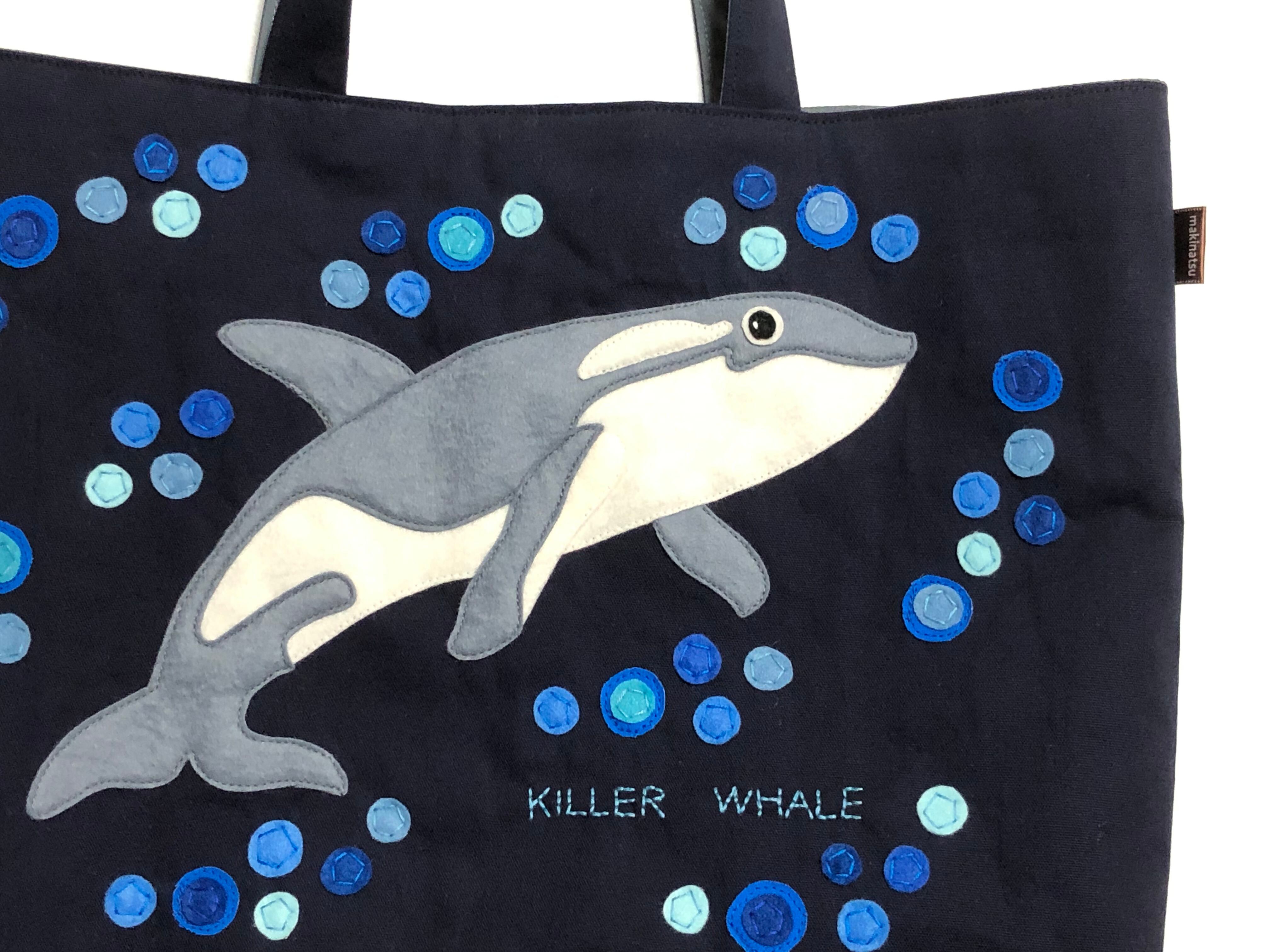 シャチのアップリケ付きレッスンバッグです。