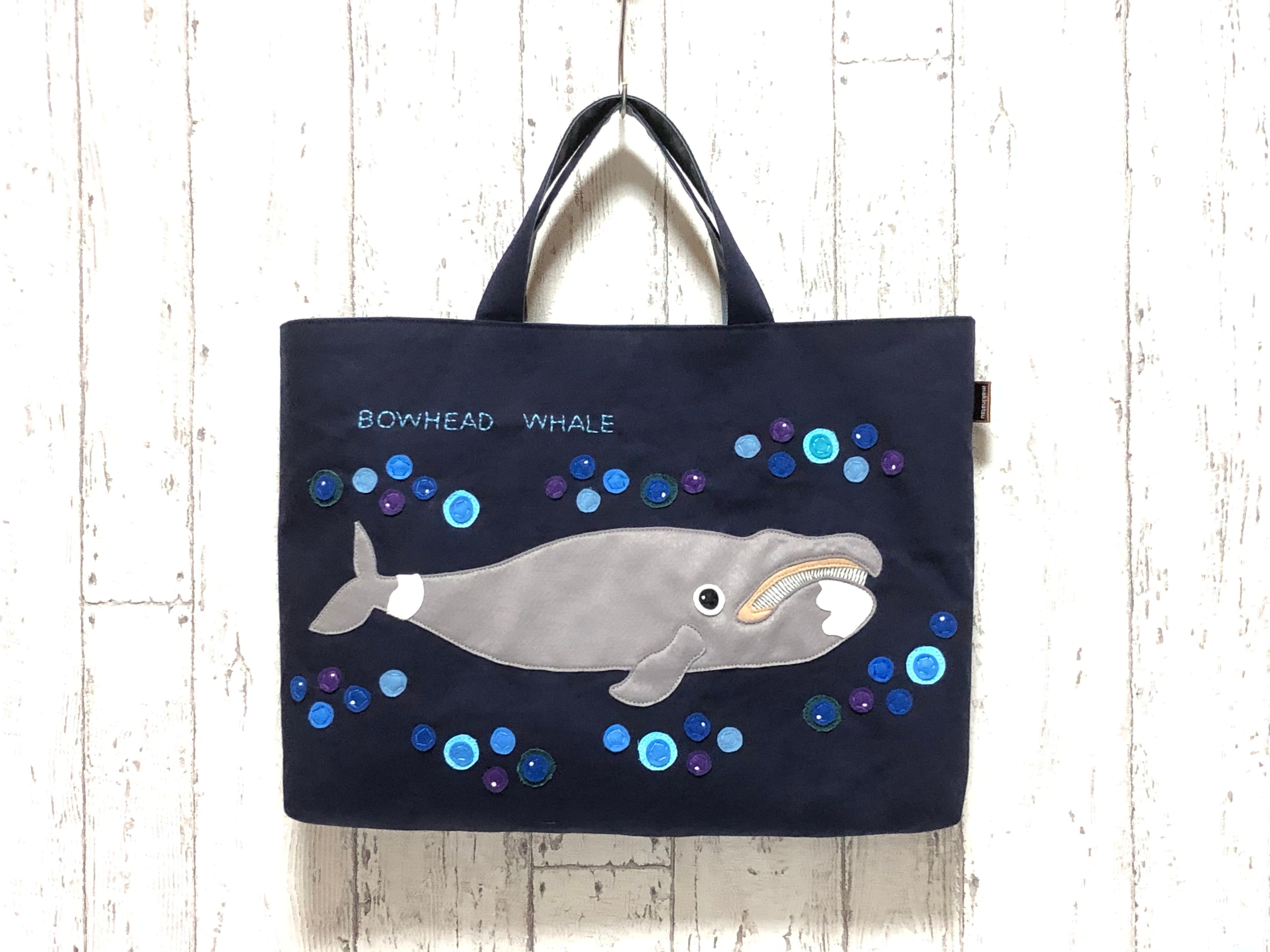 北極クジラ・レッスンバッグ(ネイビー)アップリケ/男の子/女の子