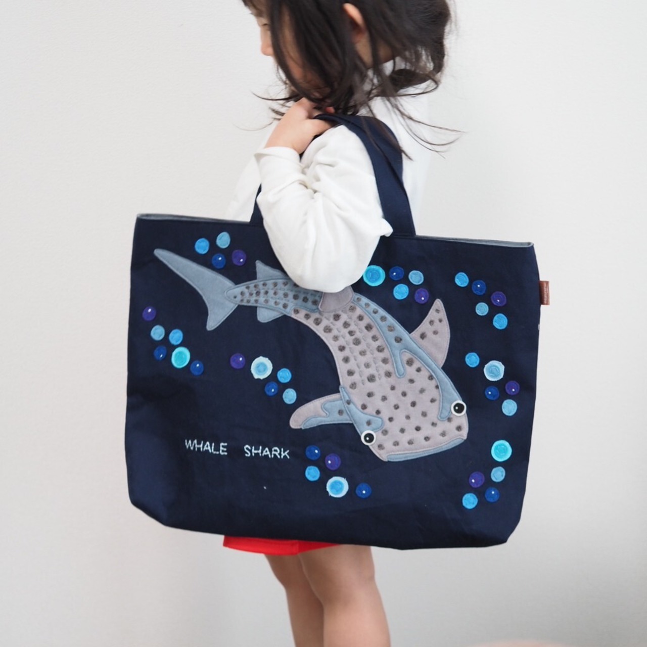 ジンベエザメ・レッスンバッグ(ネイビー)アップリケ/男の子/女の子