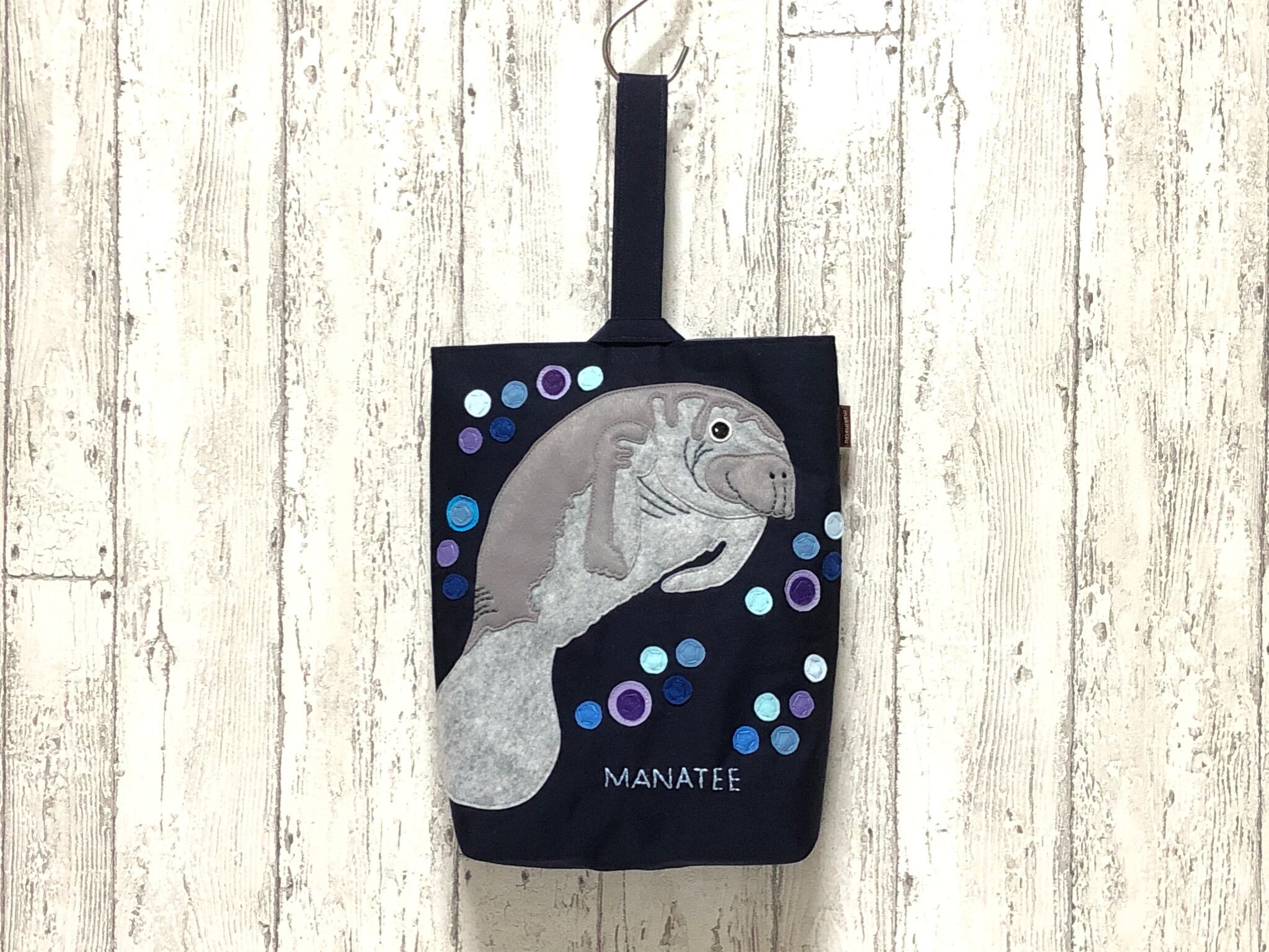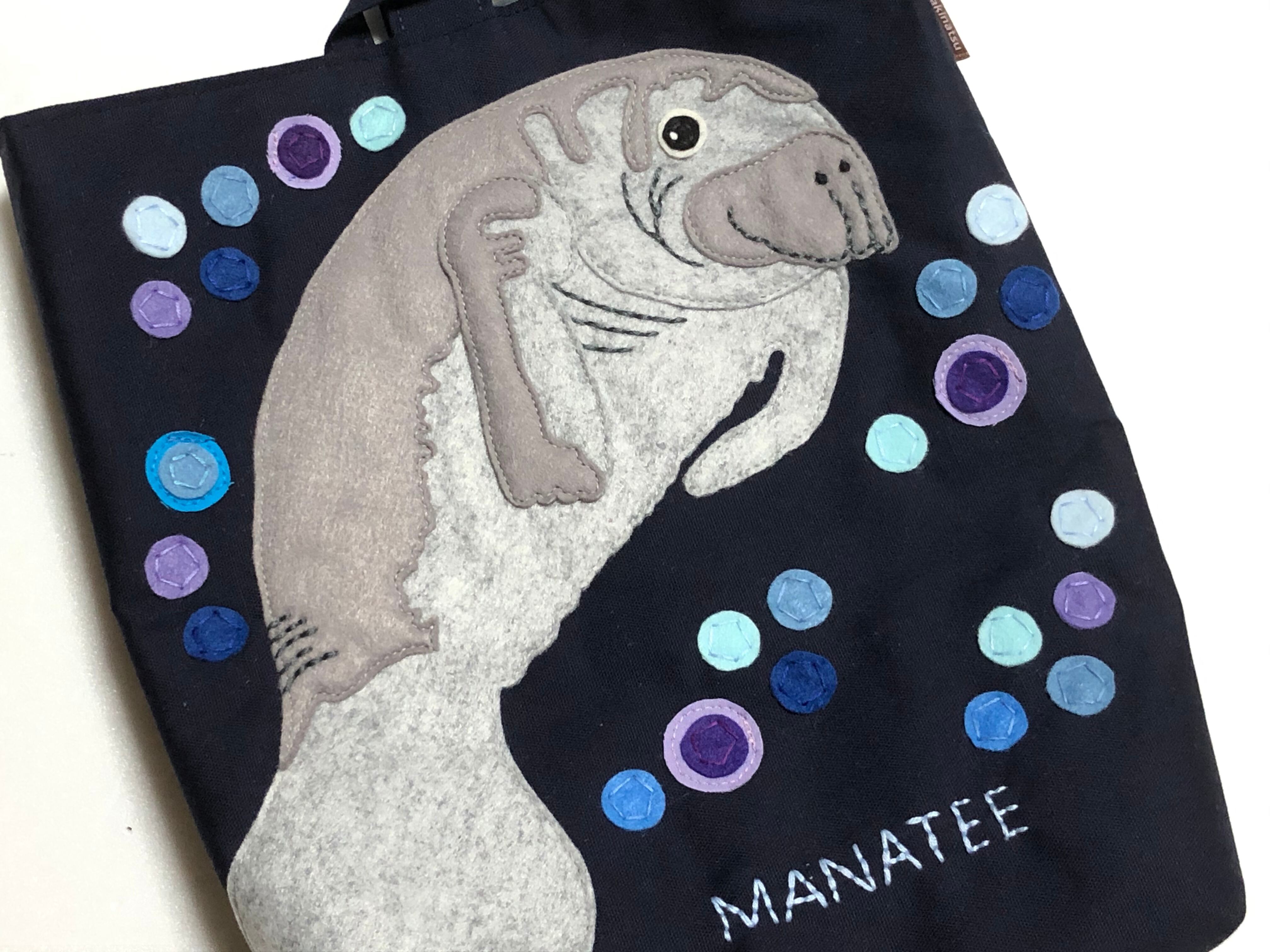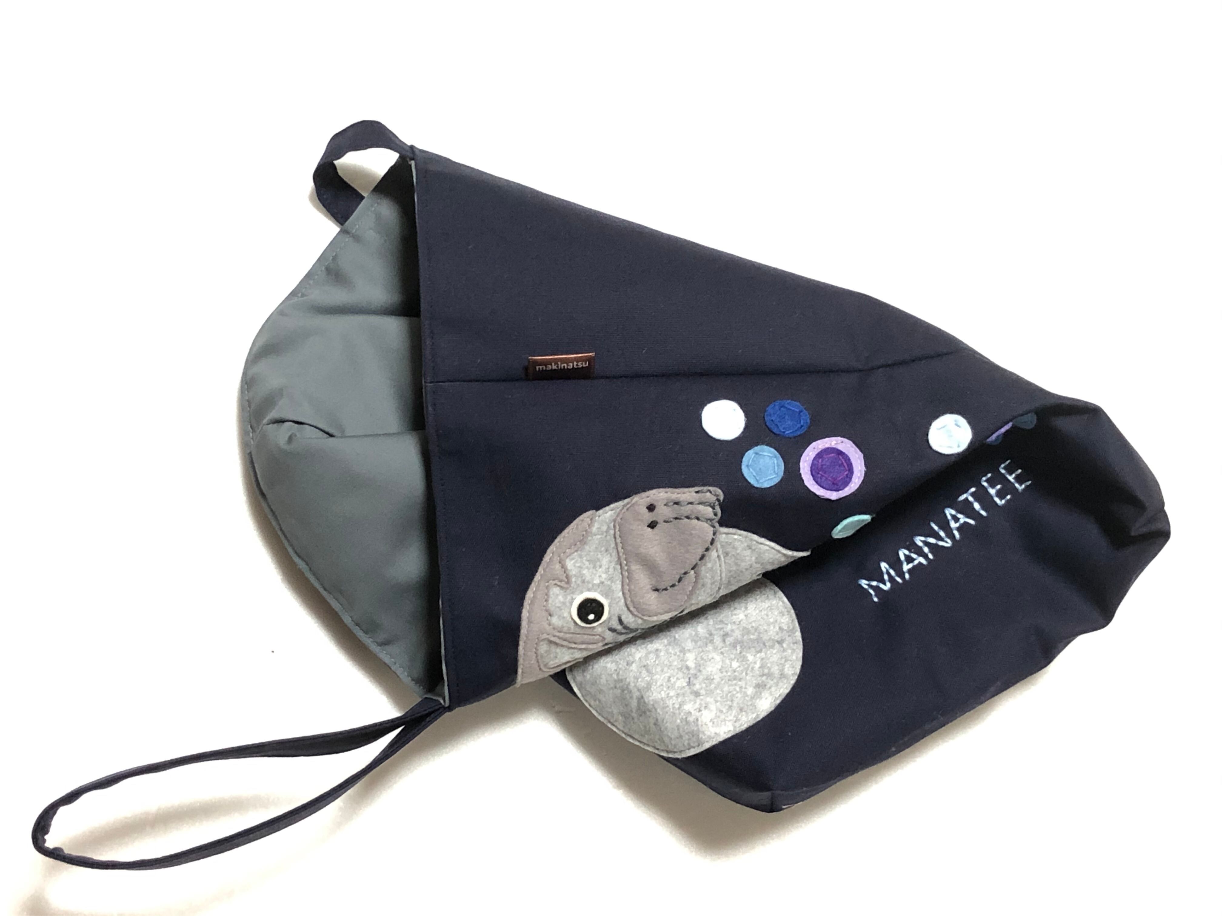 マナティのアップリケ付きシューズバッグです。