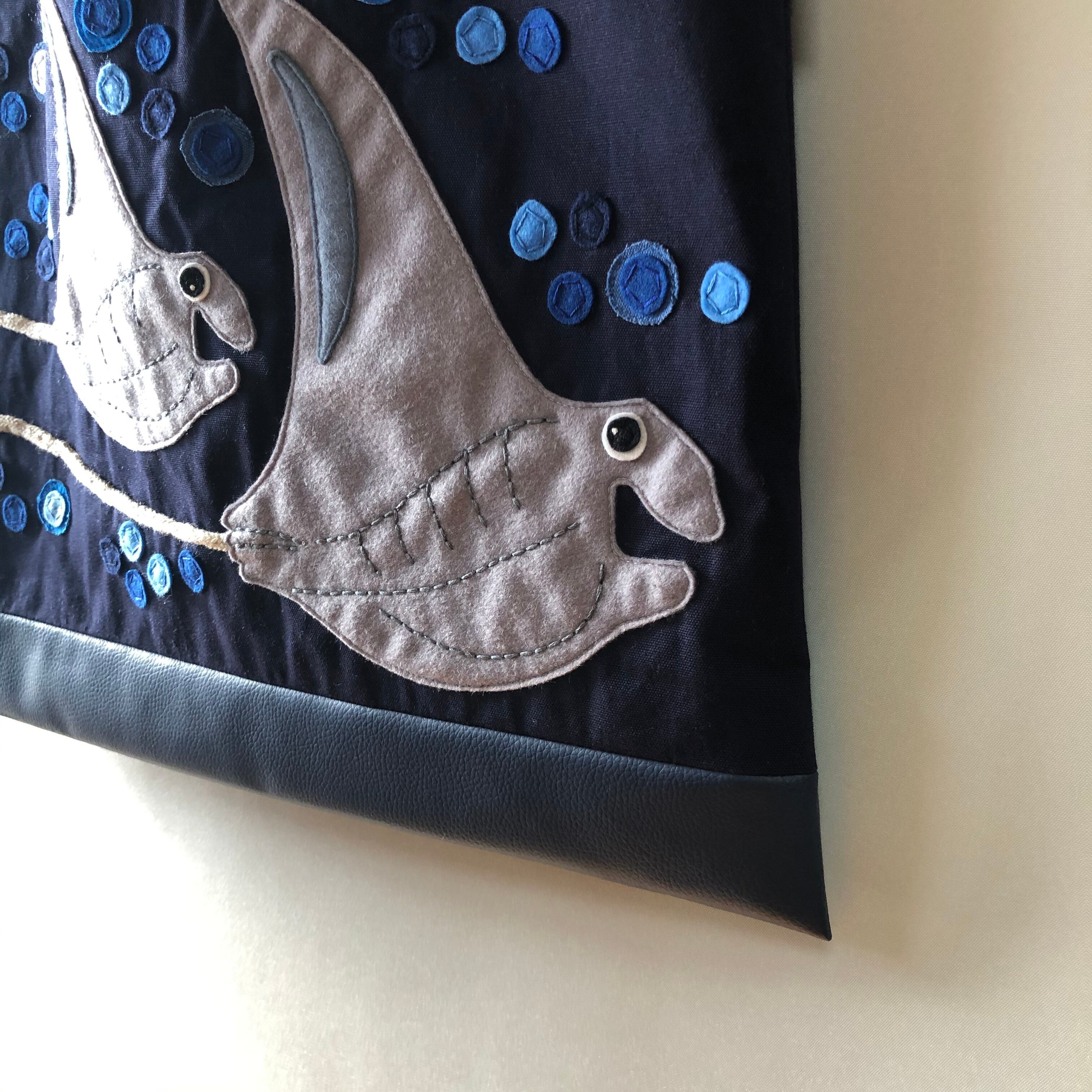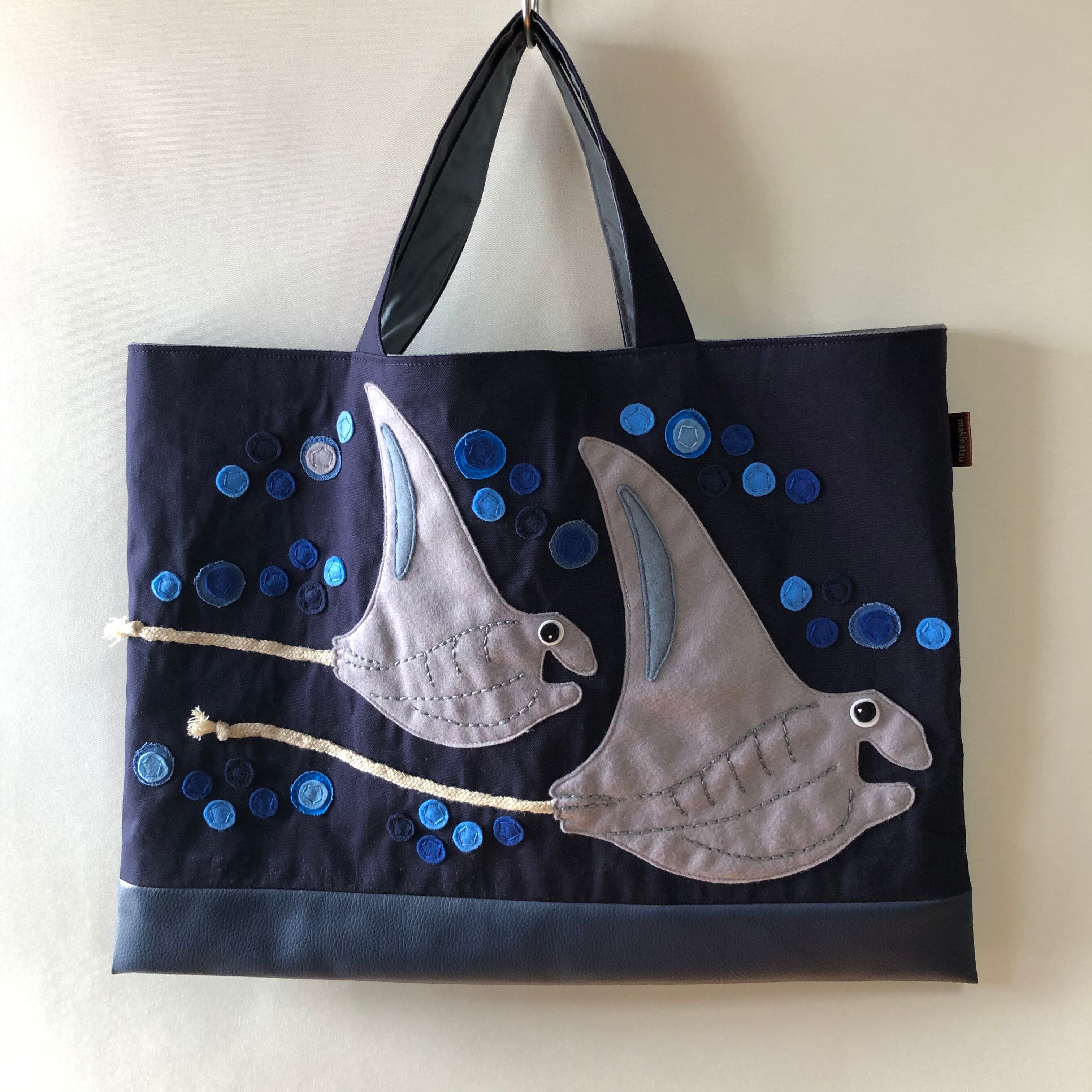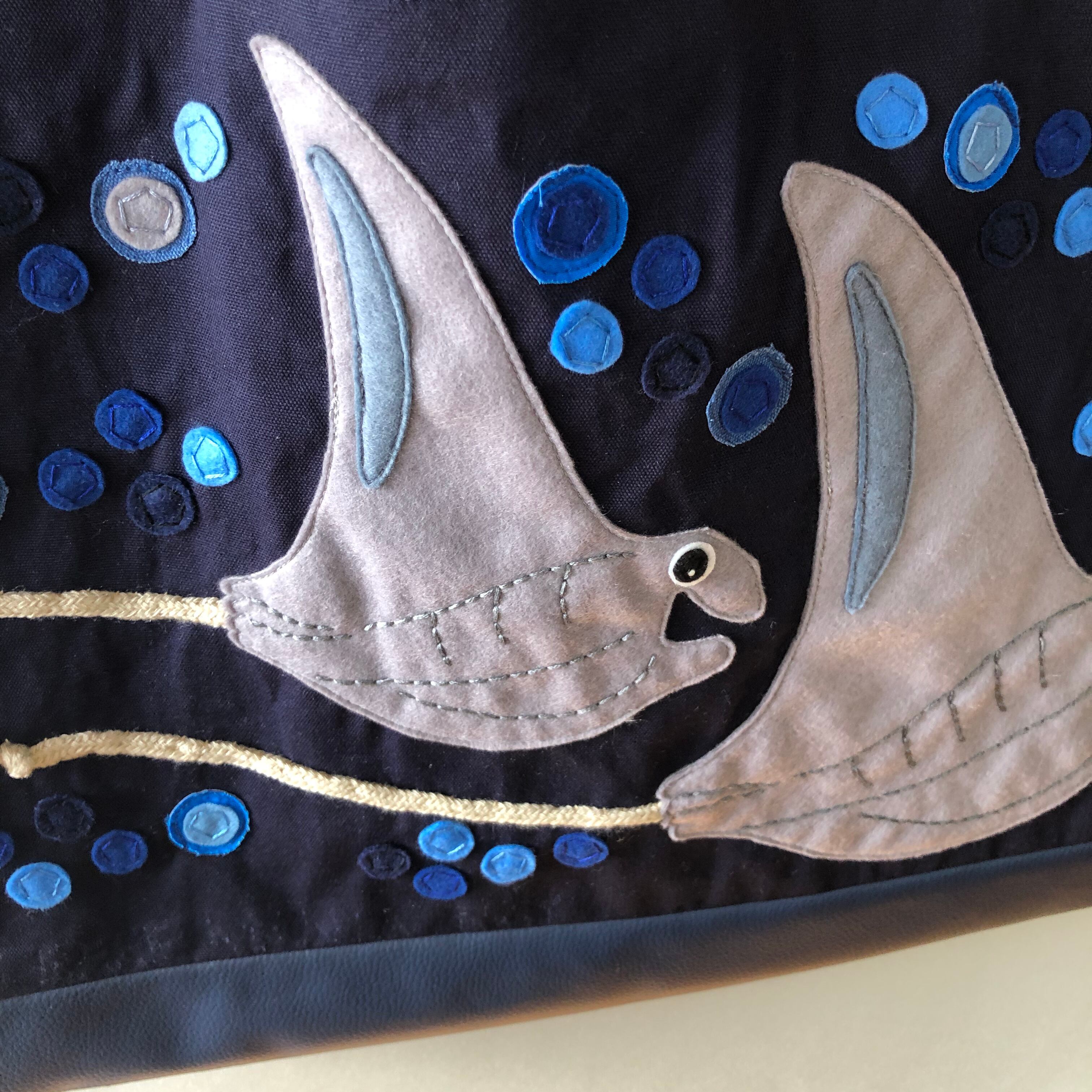 マンタのアップリケ付きマチなしレッスンバッグです。