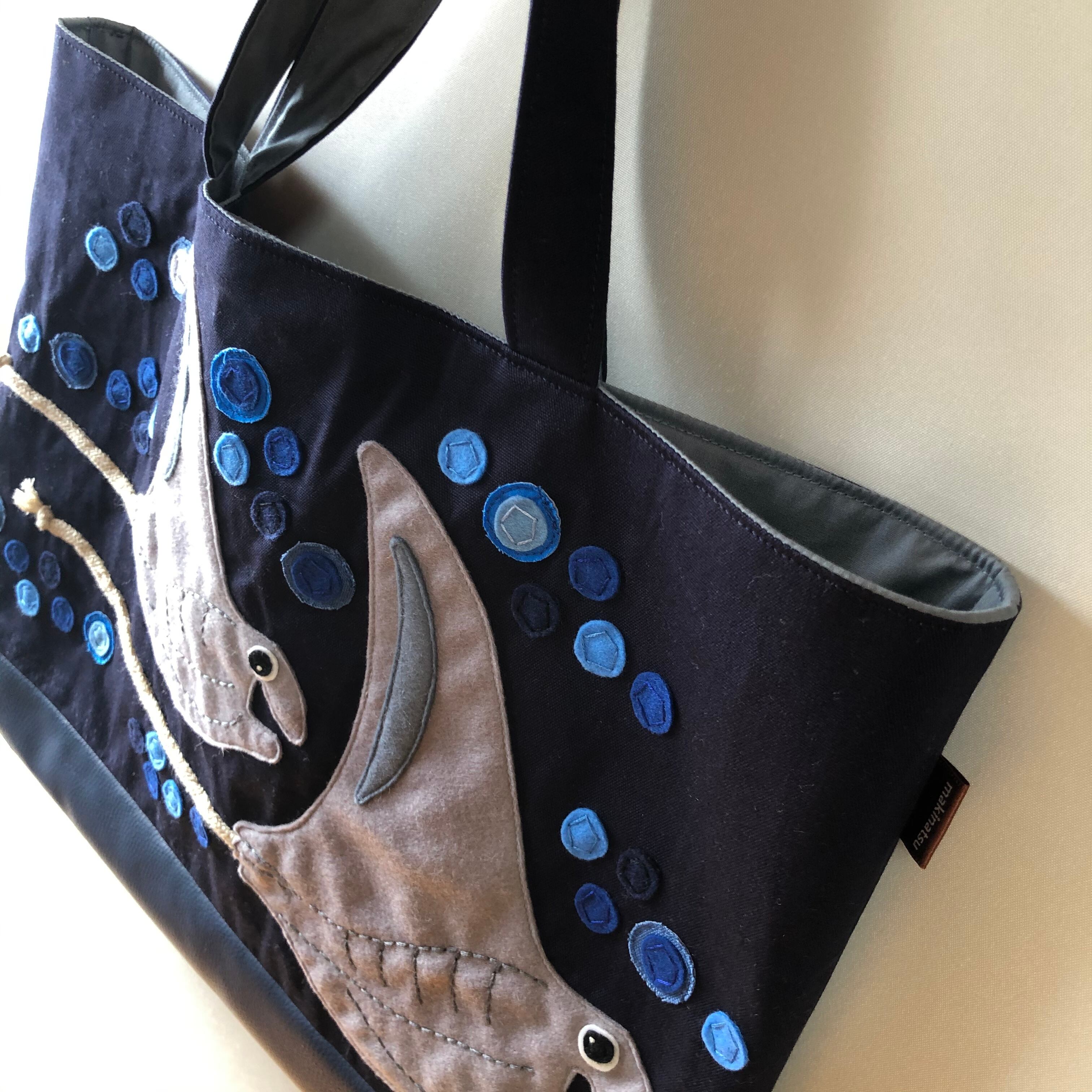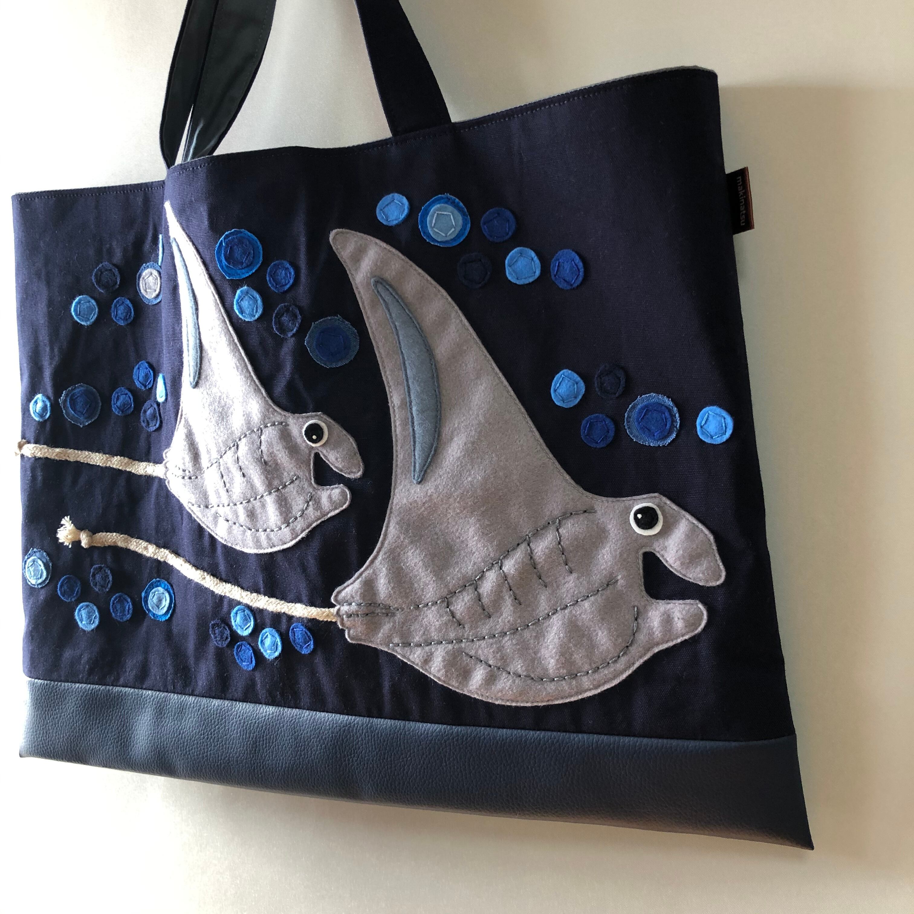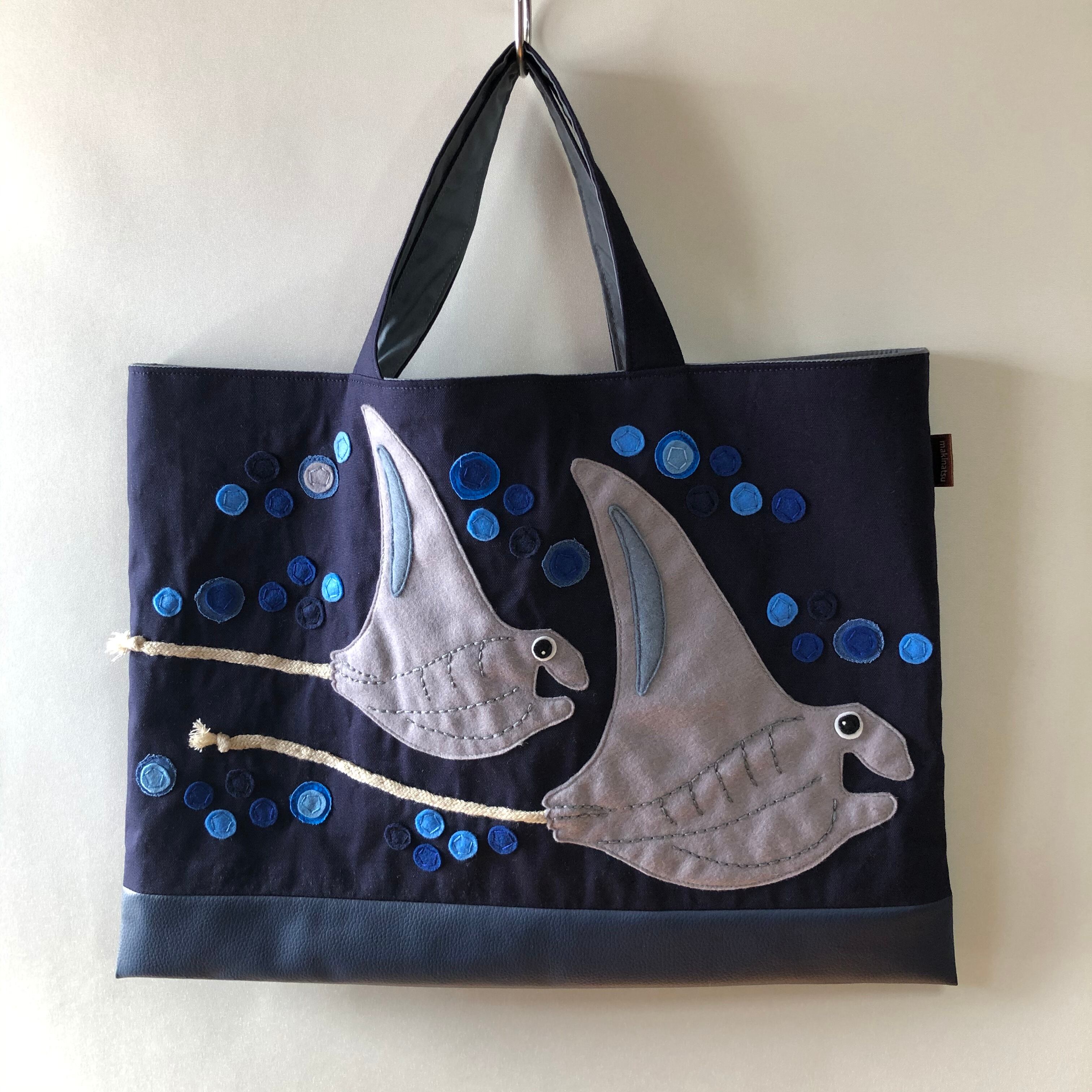 マンタのアップリケ付きマチなしレッスンバッグです。