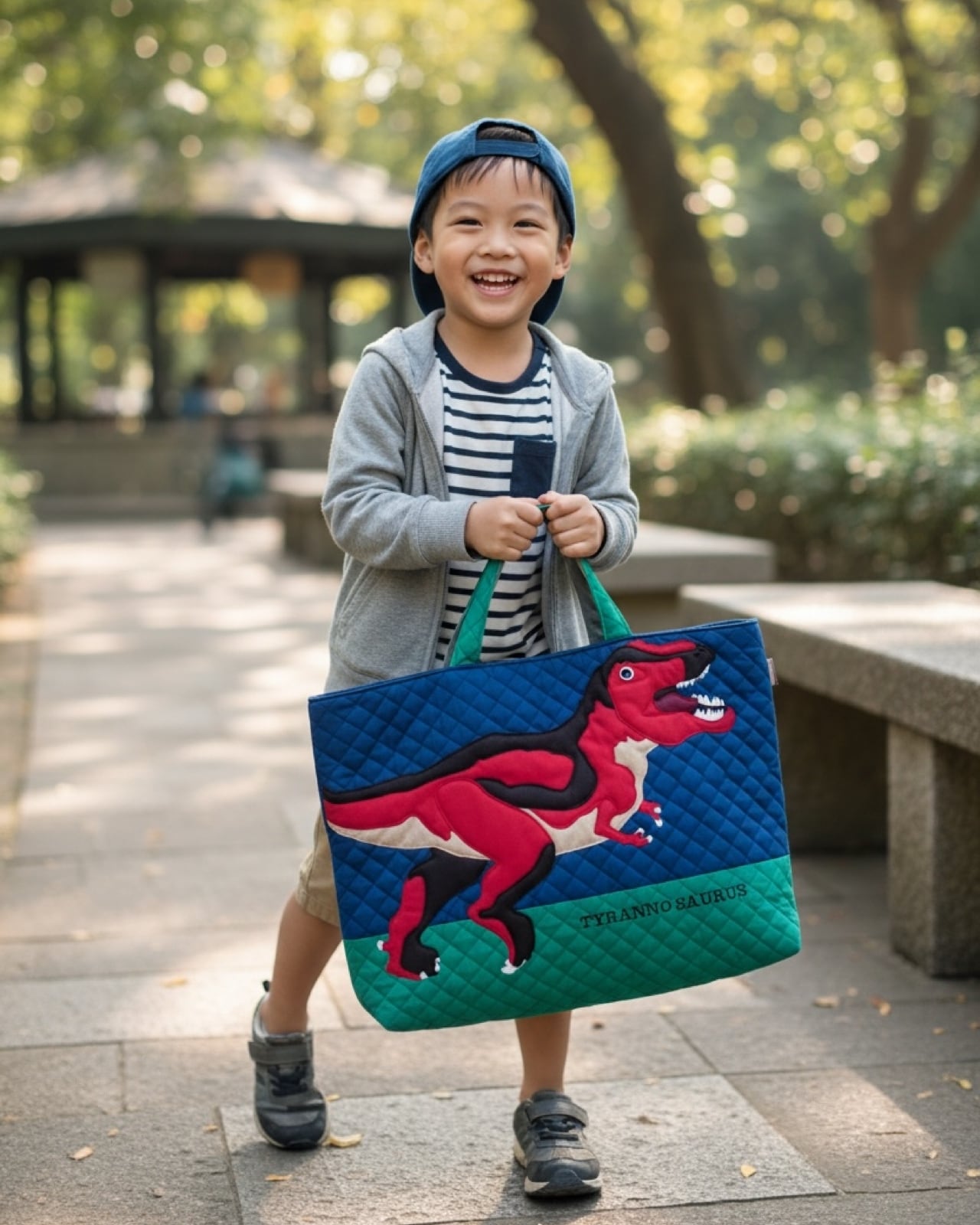 レッスンバッグ・恐竜ティラノサウルス(紺×赤)