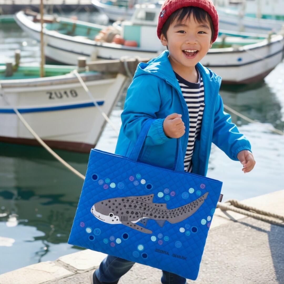 絵本バッグ・トラフザメ(青)キルティング/男の子/女の子